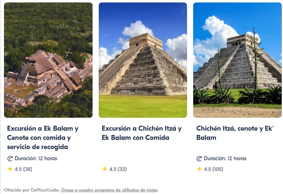 Existen tours que combinan la visita a Ek Balam con rituales mayas y baños en cenotes cercanos, como el Cenote Maya Park Yucatán. Aunque algunas opciones organizadas pueden no estar siempre disponibles, muchos hoteles ofrecen excursiones con precios variados.